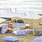 Las instalaciones de playa del hotel Dyo Suites incluyen sillones y quitasoles.